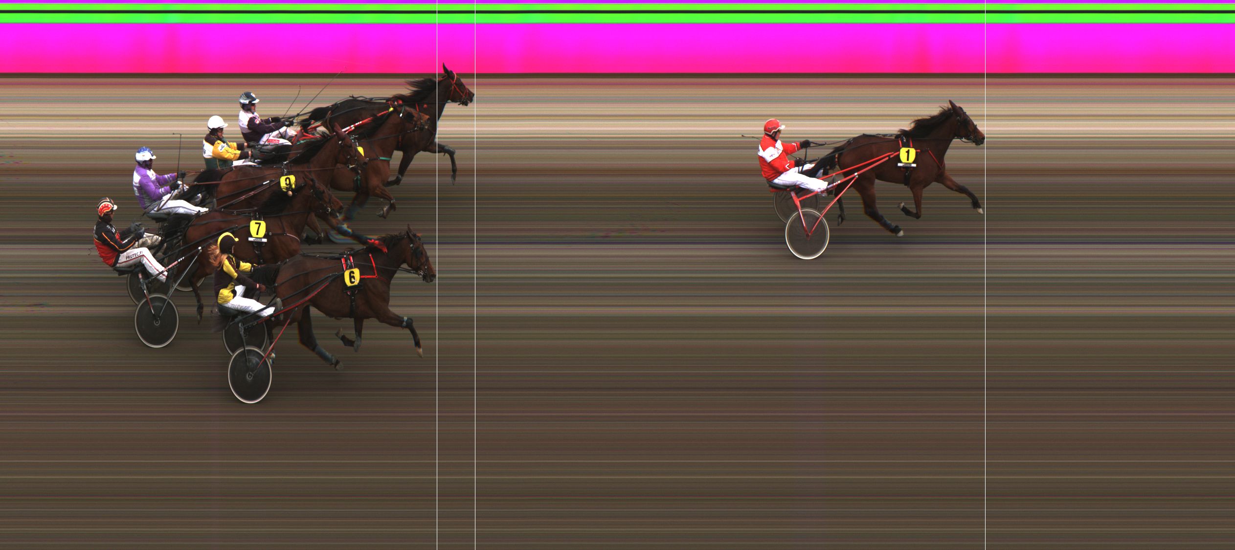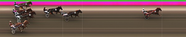 HURJAHARJA: Laukkasi lähtösuoralla, pääsi keskipareihin toisen jonoon. Pääsi matkalla 2. ulos, mistä nousi viim. takasuoran lopussa selässä kolmannelle. Käänsi loppukurvissa ahtaasti neljännelle, kiri tosi tasaisesta rintamasta toiseksi. Hylättiin kuitenkin loppukurvin murtautumisesta.