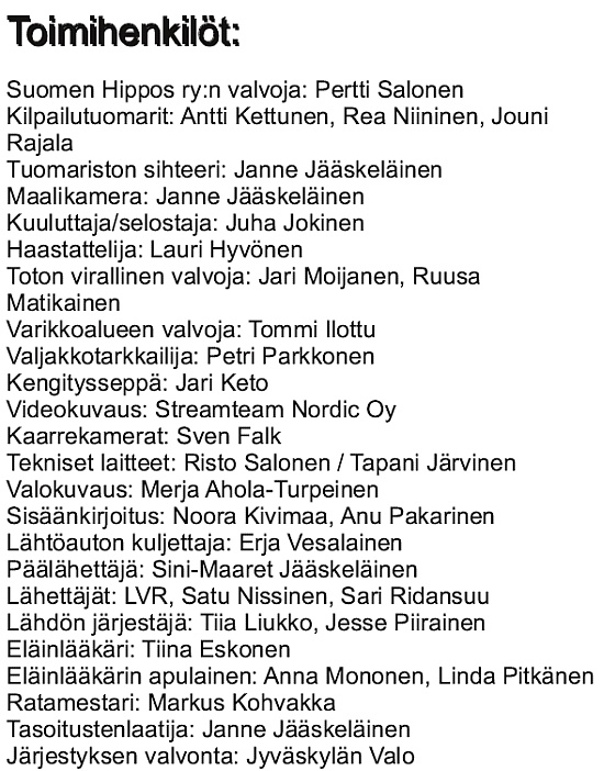 Opetuslähtö klo 14.50. Koelähtö klo 15.00. Ponilähdöt klo 15.30 ja 15.45.