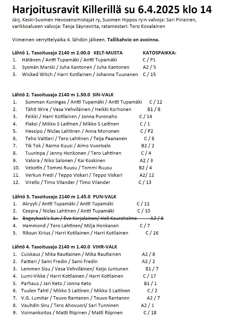 Mikäli ohjastaja ei noudata em. ohjeita, sanktiona 1-2 kk OSALLISTUMISKIELTO harjoitusraveihin!