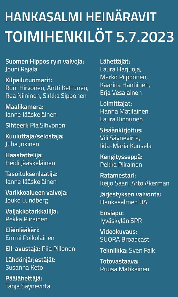 Lähtölistat, poisjäännit ja ohjastajanvaihdokset Välistartit Tulokset