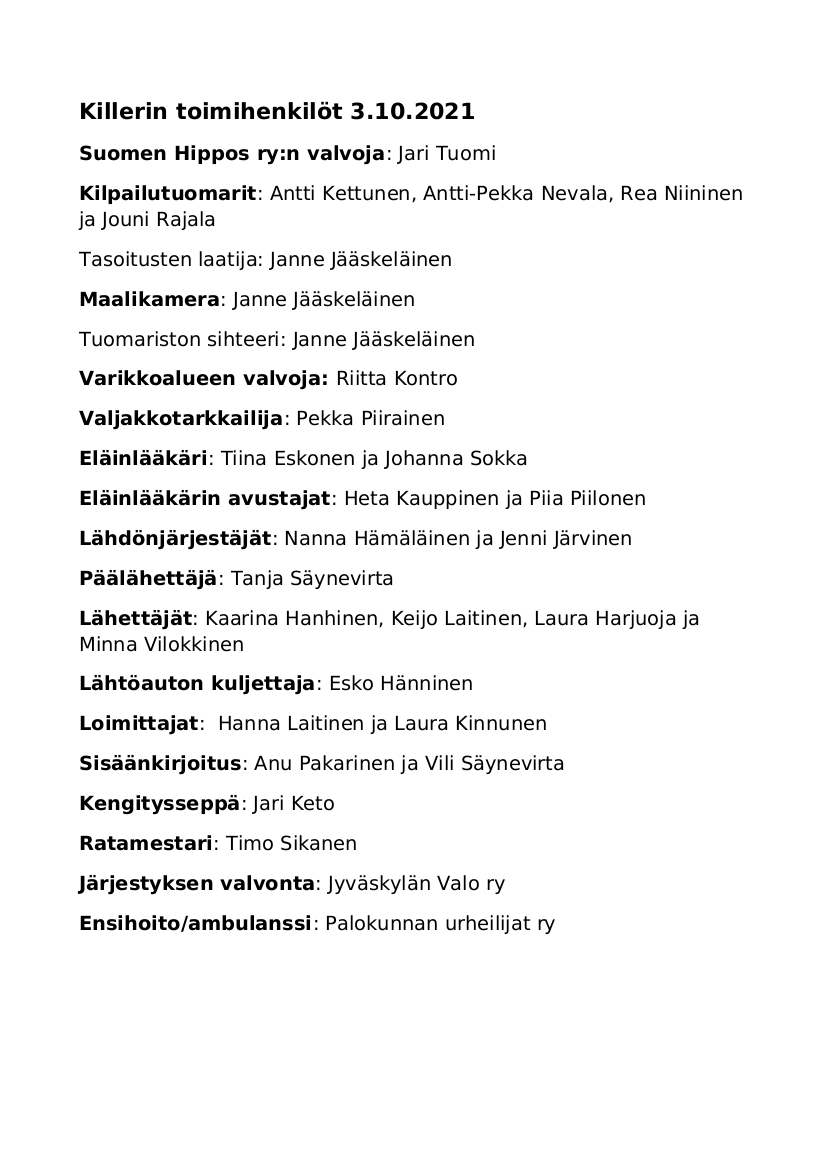 -->> HUOM!: Ponilähtö jo klo 15.30!