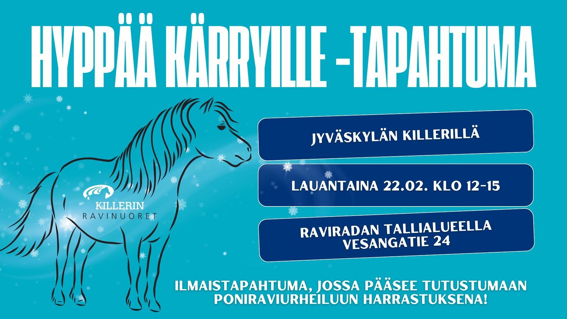 Hyppää kärryille! Poneihin ja Killerin ravinuorten toimintaan pääsee tutustumaan lauantaina 22.2. klo 12–15 Killerin raviradan tallialueella.