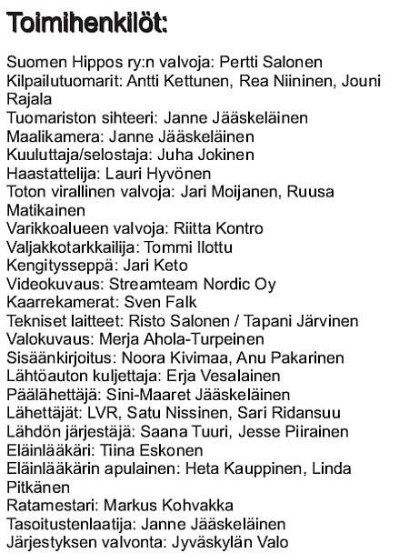 Tämän päivän lähtöjen yhteistyökumppanit: K-S Hevosenomistajat, Minimani, Biofarm, Hankkija, Sihvari, 360 Palvelut, Horze.