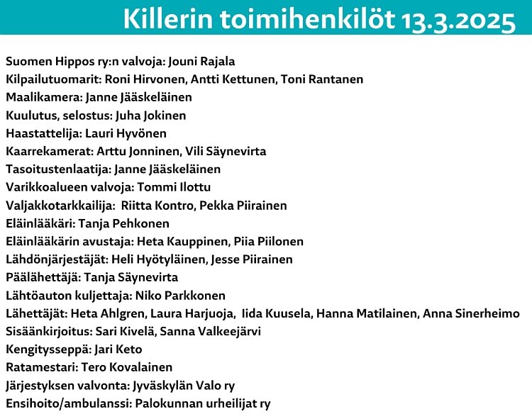 Tänään mm. Kylmäveristen monté Talvimeeting -karsinta sekä Nuorten Sarja 2025.