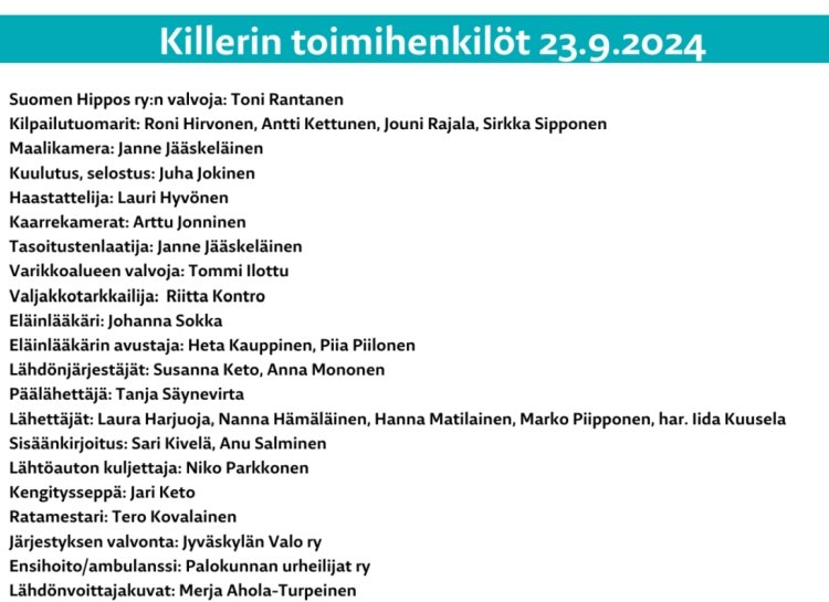Koelähdöt klo 17:00 ja 17:15. Ponilähtö klo 17:30.