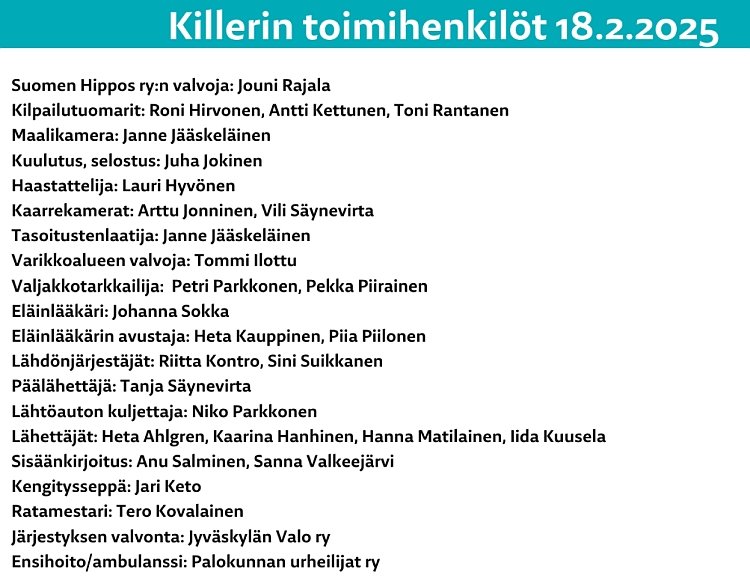 7 Christine L Garden on juossut todella kovissa lähdöissä ja aloittaa nyt kauttaa Killerillä arkisemmassa lähdössä. Viimeisin startti on Turun Kasvattajakruunu finaalista, missä tamma aloitti johtavan rinnalla ja sai vetoapua 1. takasuoralla reippaan avauksen päätteeksi. Maalisuoran alussa tamma kohosi selässä kolmannelle radalle, mutta ei yltänyt tasokkaassa lähdössä aivan kärkeen. 2 Felix Orlando palasi 30.1. Nikulaan pitkältä paussilta. Ruuna matkasi takapareissa, mistä tehtävä oli mahdoton 10-vauhtisessa lopetuksessa. Startti avasi varmasti paikkoja.