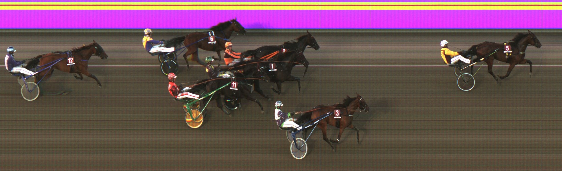 FANGO JETT: Pääsi viim. takasuoralla 5. sisältä 4. sisälle, kohosi maalisuoralla porukan takana ulommas, mutta tuli rullaillen maaliin reippaassa vauhdissa.