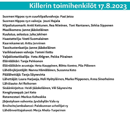 Varma loppukesän merkki on Keskisuomalainen Derby, joka on 5-vuotiaiden suomenhevosten pääkilpailu ja klassikkokisa, jonka yksi hevonen voi voittaa vain kerran. Derby on järjestetty Killerillä vuodesta 1975 saakka. Torstai-illan karsinnoista parhaat etenevät lauantain 26.8. finaaliin.
