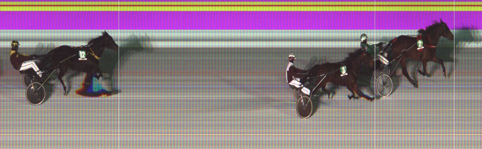 HEARTBREAKER WOMAN: Pääsi 1. takasuoran alussa kolmannelta johtavan rinnalle. Laukkasi etusuoran alussa. Jäi roikkumaan kolmannelle radalle ja juoksusta tuli liian raskas.