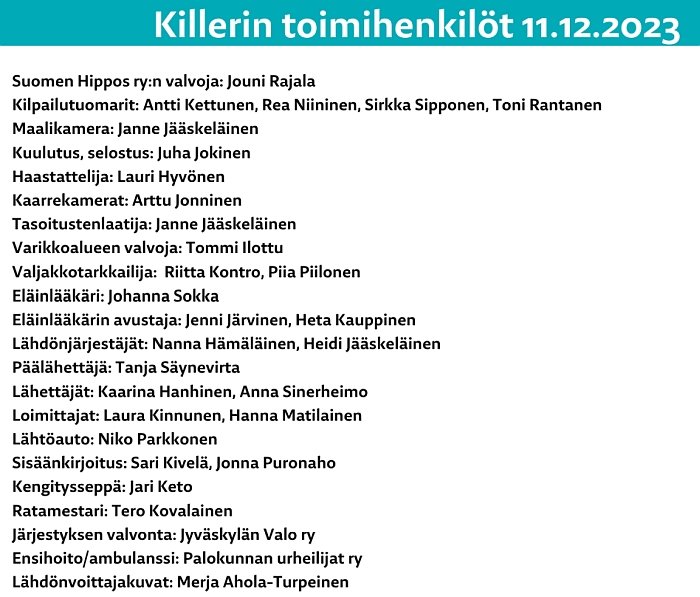Menossa mukana: Loistoset, Pölkky, Hevosklinikka Laukaa, Siirtopaino.