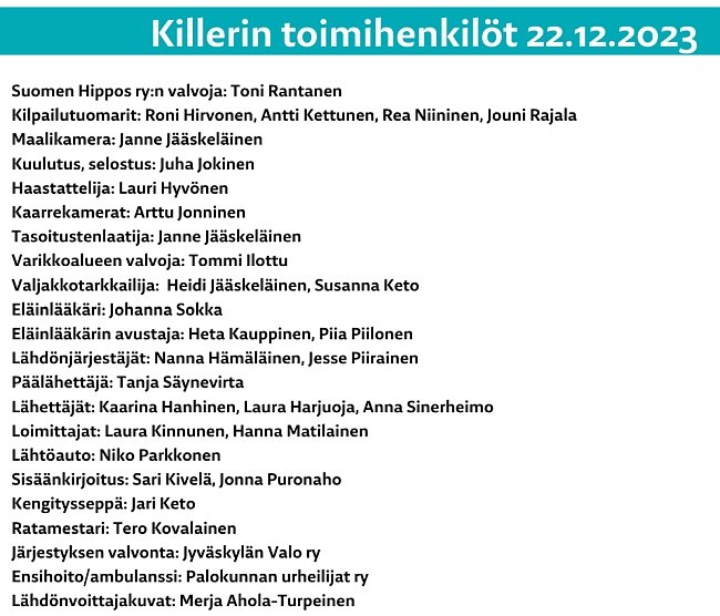 Koelähtö klo 17:20, Ponilähtö klo 17:40