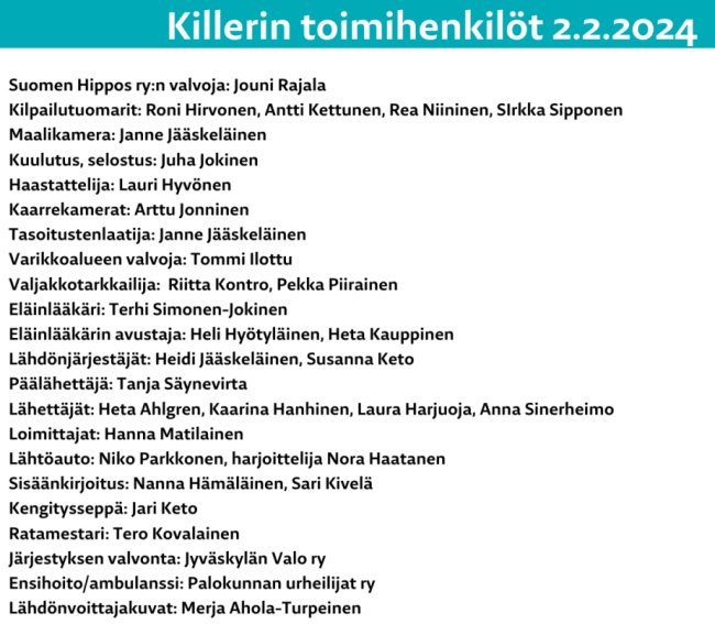 KÖMIN NIKO: Laukkasi viim. takasuoran alussa takapareissa lyhyesti. Oli viimeinen hyväksytty.