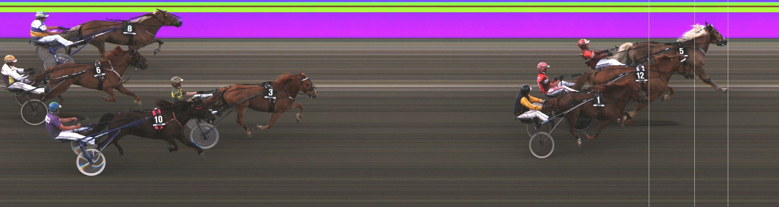 NOBLE SUPERB: Kohosi viim. takasuoralla 5. ulkoa selissä kolmannelle radalle. Käänsi maalisuoralle neljännelle ja viidennelle kaistalle, mutta ei yltänyt rahoille reippaassa lopetuksessa.