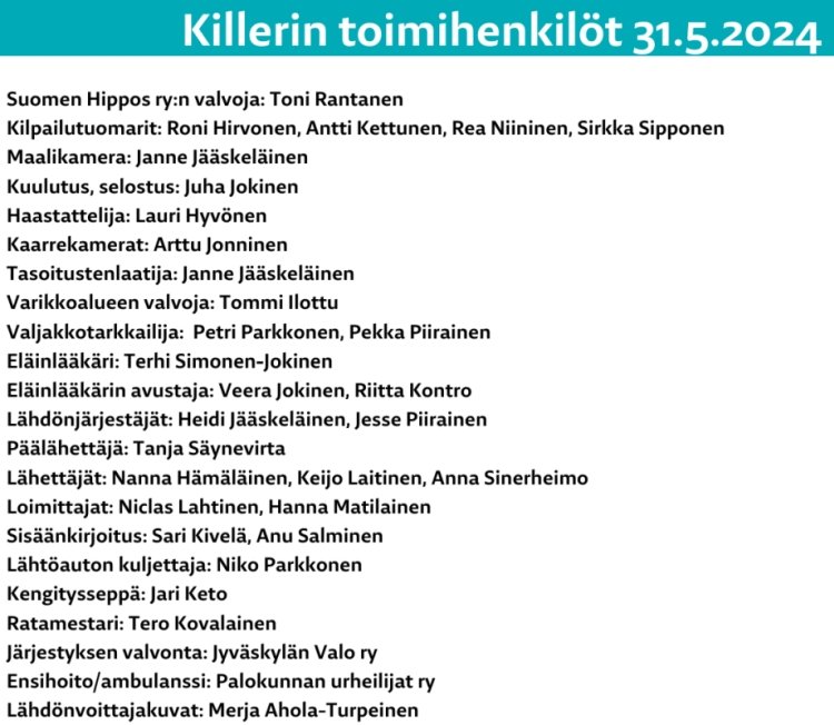 Koelähdöt klo 17.00 ja 17.10. Ponilähtö klo 17:30.