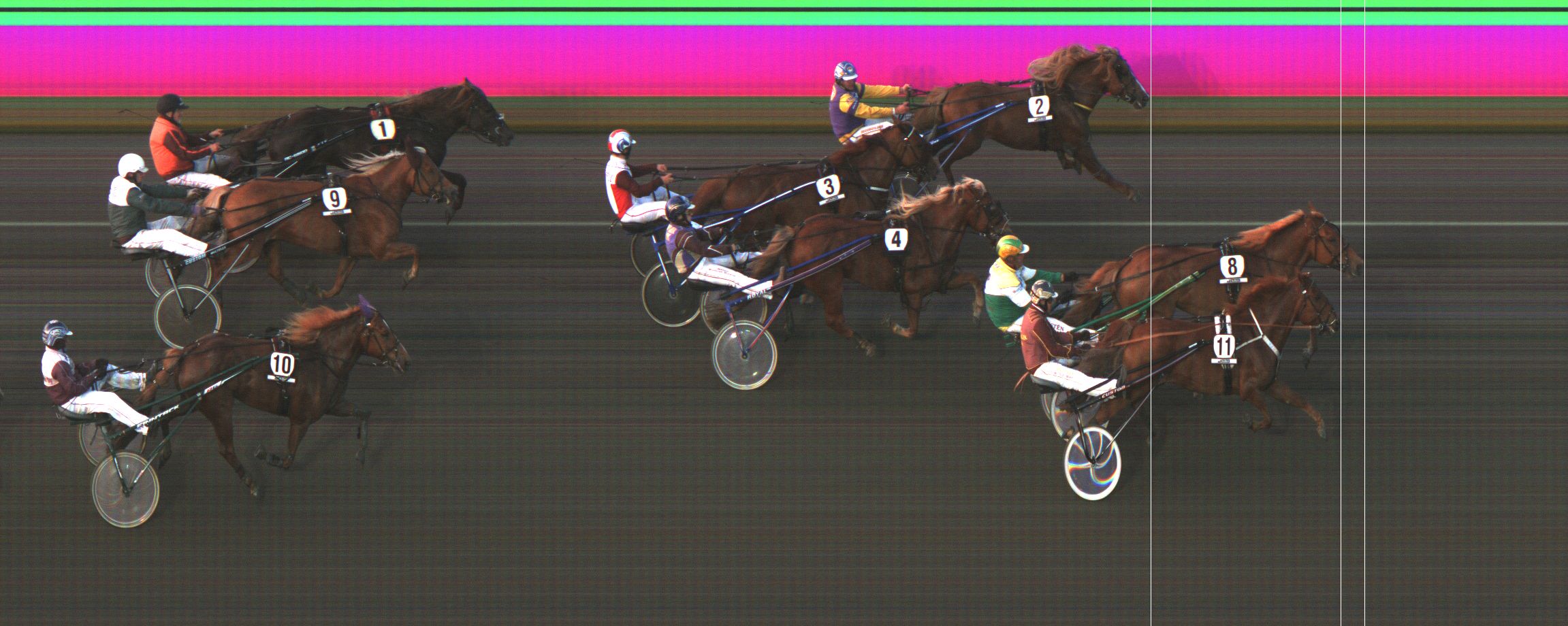 AMIRAAL LADA: Laukkasi etusuoran alussa 3. ulkoa jääden pääjoukon hännille. Nousi viim. takasuoran alussa kolmannelle ja eteni 400 jäljellä johtavan rinnalle. Kamppaili maalisuoralla toiseksi.