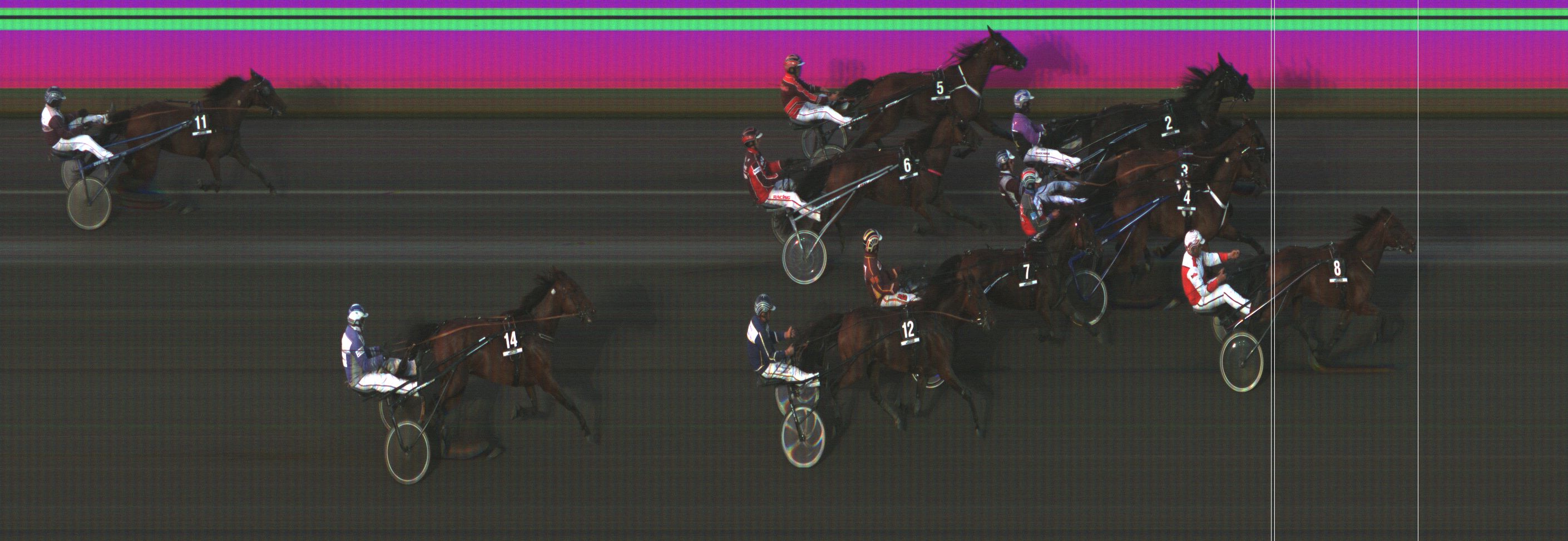 LIEKIN LUMO: Kiersi kolmatta rataa selässä, kiersi etusuoralla neljännen radan kautta kolmannen radan veturiksi. Pääsi 3. ulos 800 jäljellä, käänsi viim. takasuoran alussa uudelleen kolmannelle, kamppaili rehdisti totoon.