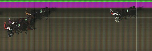 FALCON HÅLERYD: Nousi viim. takasuoran alussa 4. ulkoa neljännelle radalle, eteni loppukurvin alussa 2. ulos ja puristi maalisuoralla totoon.