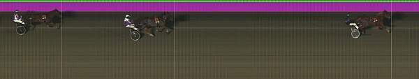 VIIMAVIRTA: Laukkasi lähtösuoralla, pääsi 1. takasuoralla kolmannelta radalta johtavan rinnalle. Laukkasi viim. takasuoran alussa uudelleen.