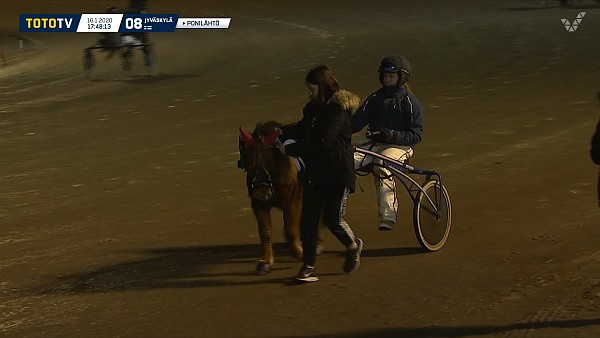 LUMI-PINJA: Laukkasi neljänneltä sijalta 2. kurvin alussa, laukkasi vajaa kierros jäljellä taustalla uudelleen.