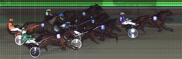 JOLLEX: Laukkasi keskipareista 1. takasuoran alussa, uudet laukat taustalla runsas kierros jäljellä ja 3. kurvissa.
