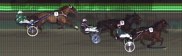 AMIRAAL VICTOR: Prässäsi 1. takasuoralla johtavan rinnalta keulaan, kamppaili kovassa lopetuksessa kolmen hevosen rintamassa toiseksi.