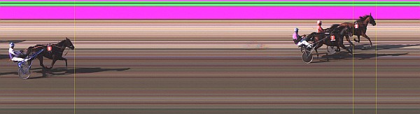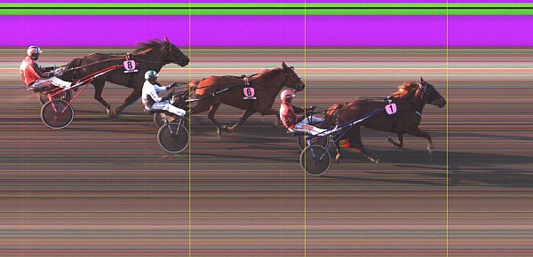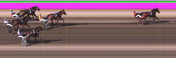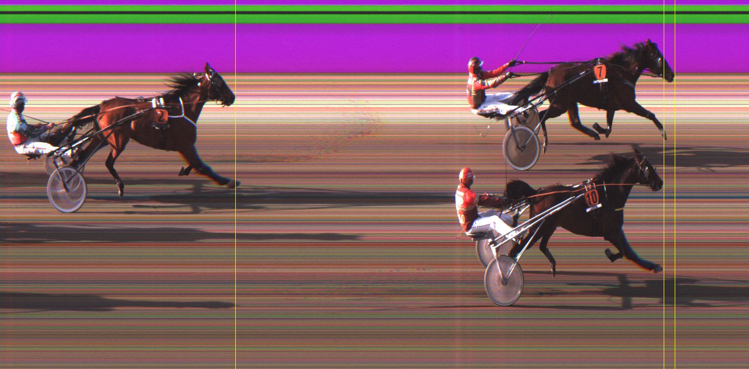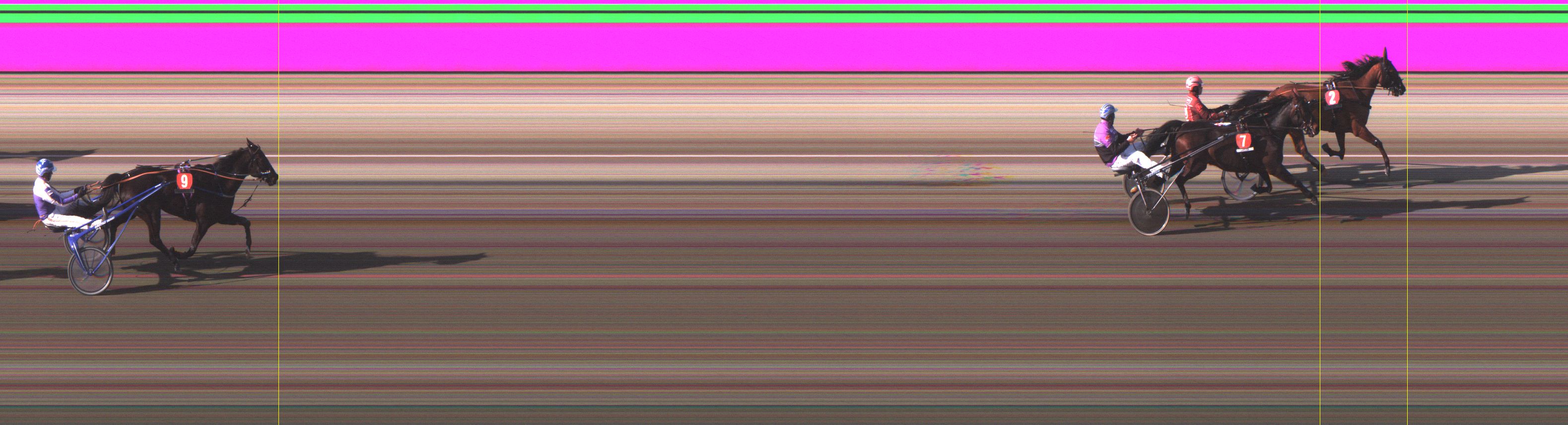 HISSUN LIISI: Jäi kuuden hevosen lähdössä 1. takasuoran lopussa harvassa porukassa toiselta sijalta kolmanneksi. Laukkasi maalisuoran alkaessa menettäen asemiaan.