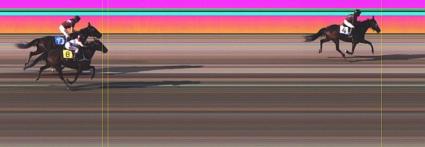 TAIKAMYRSKY: Lähti 40 metrin pakilta, eteni harvassa porukassa 2. kurvissa toiselle ilman selkää. Jäi 900 jäljellä 2. ulos, nousi viim. takasuoran alkaessa kolmannelle radalle. Puristi maalisuoralla varmaan voittoon.