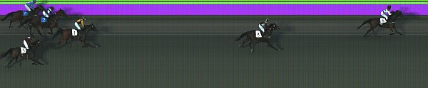 UNBOUNDED STRIDE: Vaihtoi 1300 jäljellä 3. sisältä 3. ulos, laukkasi reippaassa vauhdissa maalisuoran alkaessa.