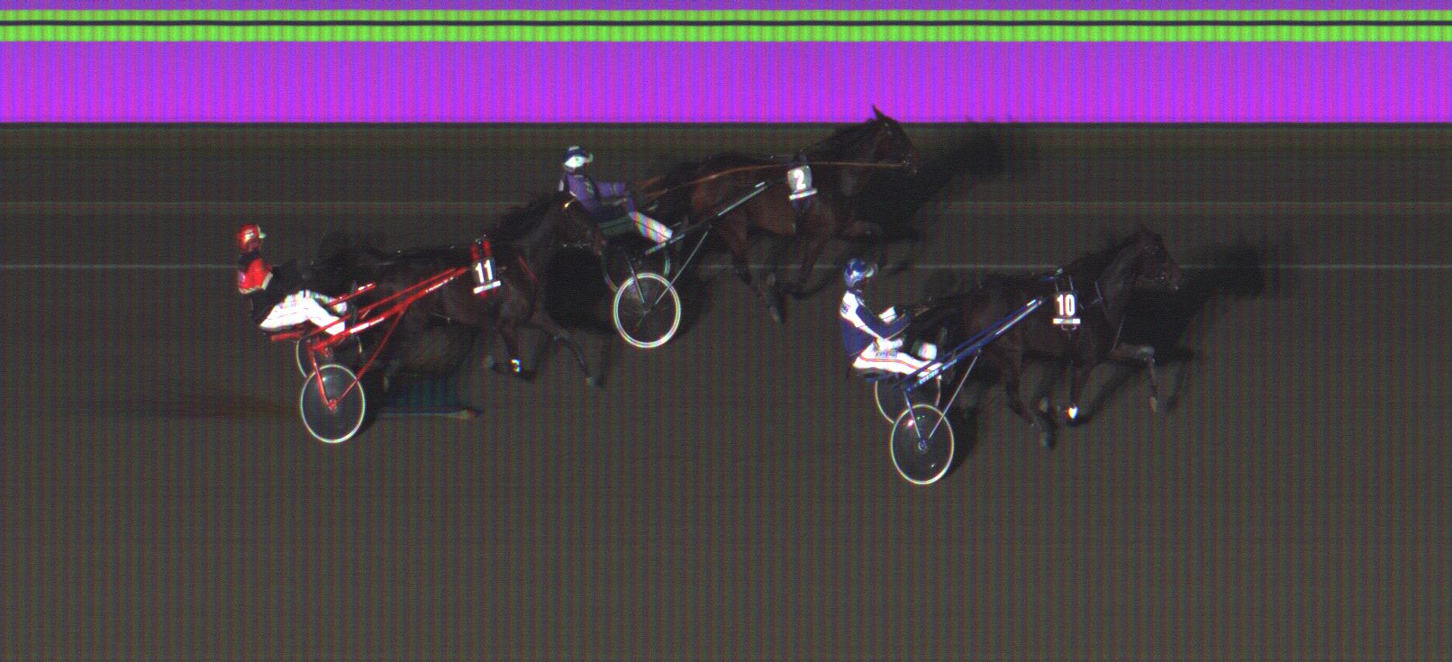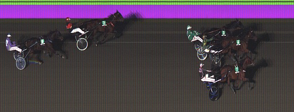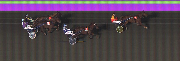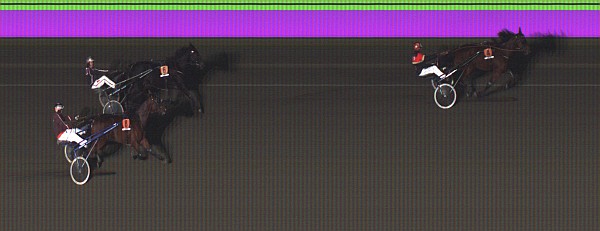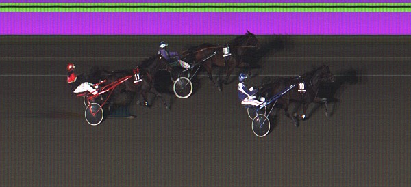 FULL PICTURE: Käänsi maalisuoralle kiriin 3. ulkoa ja tuli mukaan tosi tasaiseen kolmen hevosen rintamaan.