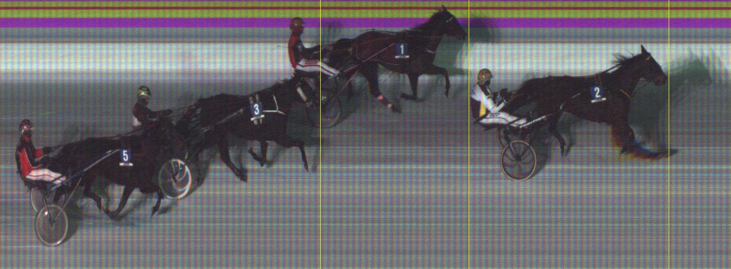 SJÖ KONGEN: Lähti 80 metrin pakilta, nousi 1. takasuoran alussa kolmannelle radalle ja eteni 1300 jäljellä johtavan rinnalle ja keulaan etusuoralla. Veti reipasta ja otti epätasaisessa lähdössä selvän voiton.