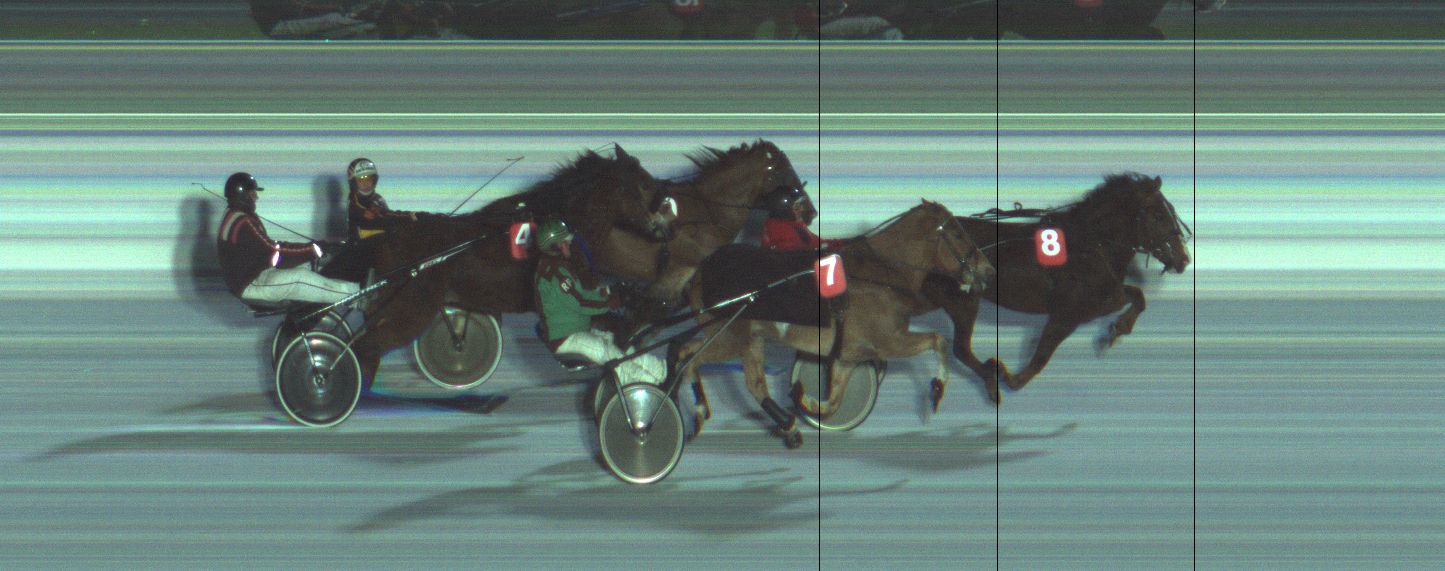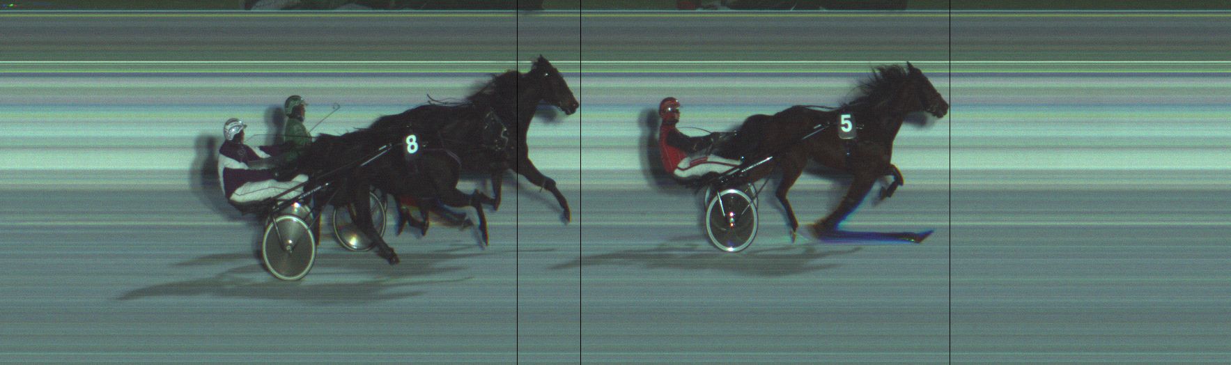 HYPNOTIQUE: Jäi 1. kurvin lopussa johtavan rinnalle, mutta haki keulat 1. takasuoran lopussa. 2. sisällä juossut Crossfire Eros kiri maalisuoralla täpärästi ohi.