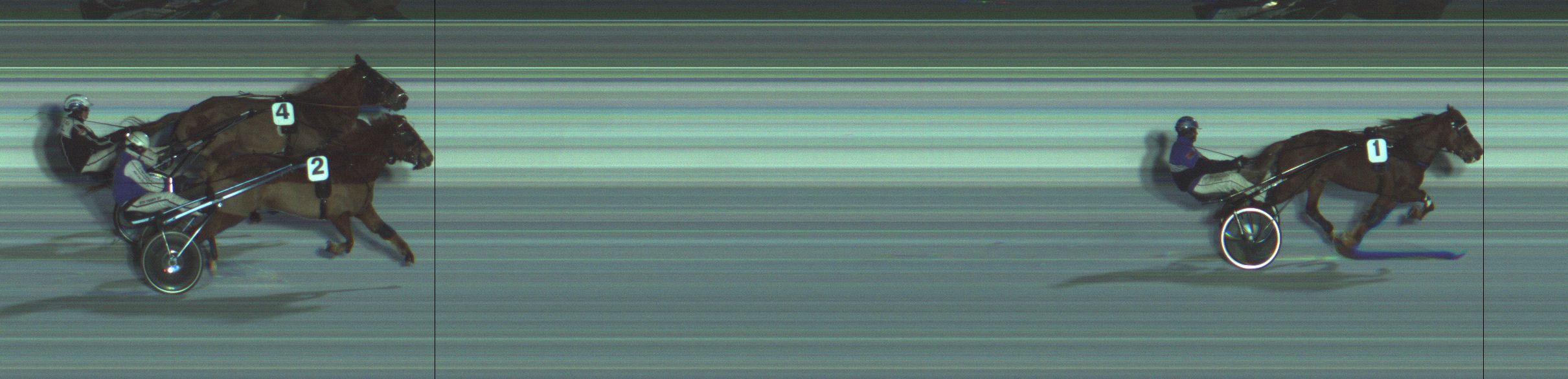 HUUGER: Seuraili neljän hevosen lähdössä jumbosijalla, peri lopussa kolmannen sijan vastustajan laukattua.