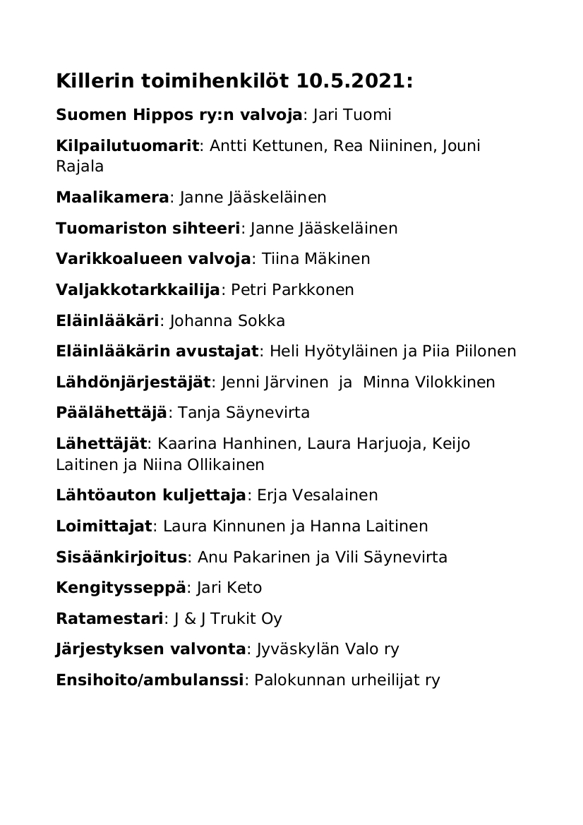 Mukana menossa: Suomenhevosliitto, Speedex, Hoviruoka, Hankkija, Finntack, Hevosklinikka Laukaa.