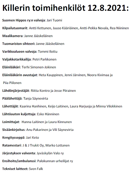 Mukana menossa: Suomenhevosliitto, Siirtopaino, Eggersmann, Keskisuomalainen, Minimani, Racing, Yara & Vapo, Hevosklinikka Laukaa, LähiTapiola, POP Pankki.