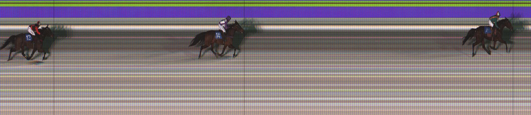DEENA BELUS: Nousi 600 jäljellä 2. ulkoa kolmannelle ja eteni 400 jäljellä johtavan rinnalle. Kamppaili maalisuoralla voitosta ulkoa kirineen Callela Keenelandin kanssa, joka ehti niukasti ohi.