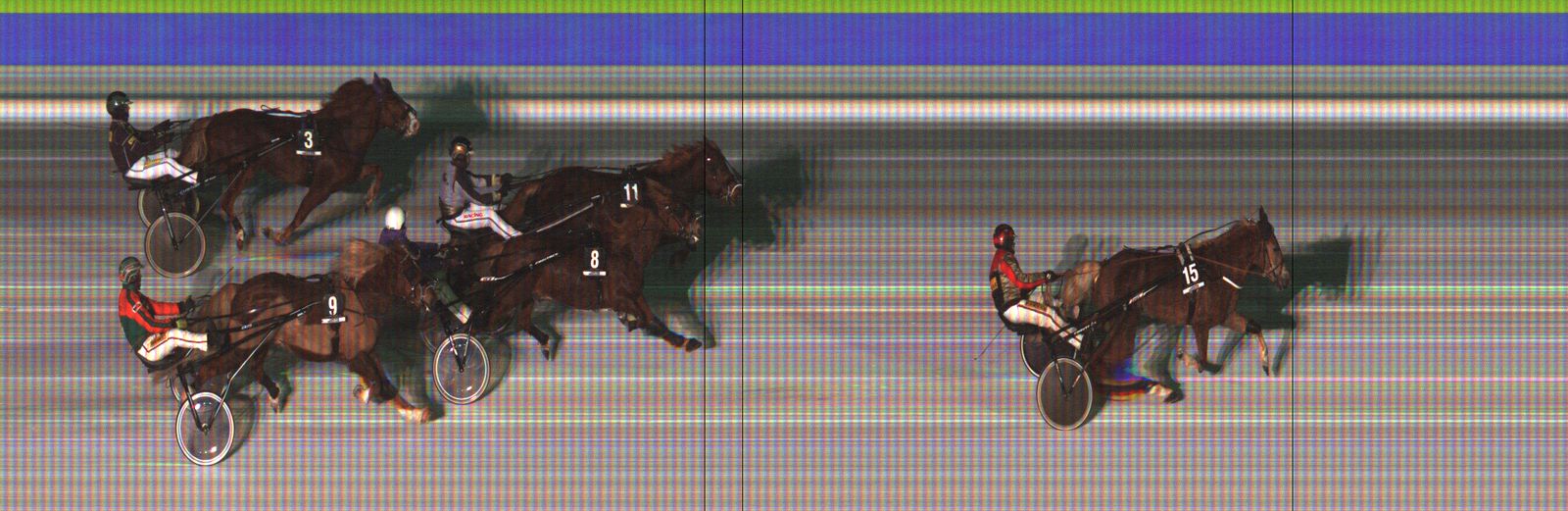 MUALIMANKUATAJA: Laukkasi lähtöön lyhyesti. Laukkasi 1. takasuoralla uudelleen noustuaan 2. ulkoa kolmannelle. Kolmas laukka taustalla etusuoralla.