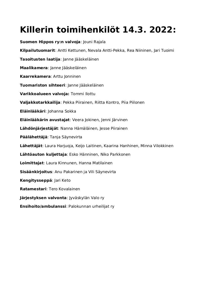 Lähtölistat, poisjäännit ja ohjastajanvaihdokset
