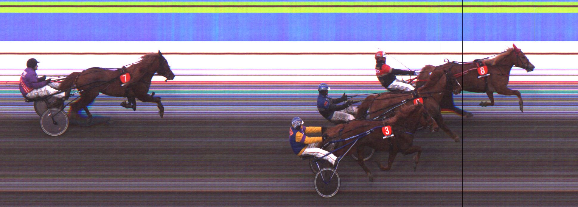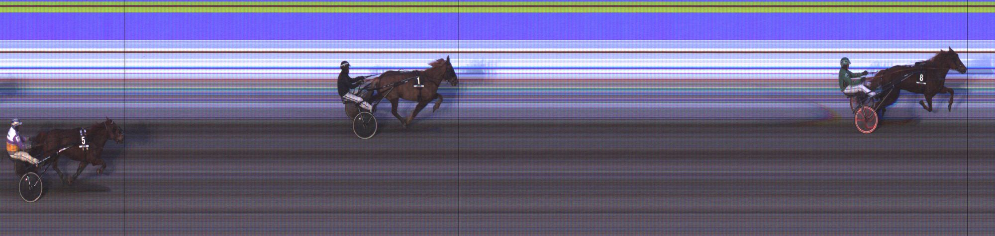 SOME: Luovutti keulat 1. kurvin lopussa. Kohosi viim. takasuoran lopussa toiselle ilman selkää, nostettiin pian kolmannelle radalle. Kiri neljän hevosen lähdössä lopussa niukkaan voittoon.