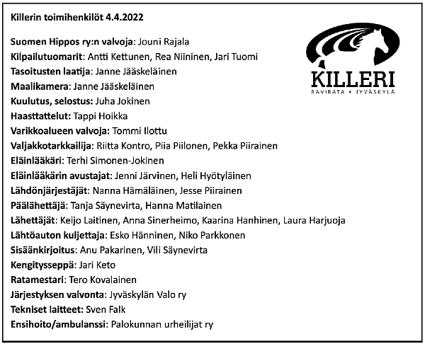 KIHIKIRI: Jäi 1. takasuoralla johtavan rinnalle. Laukkasi 800 jäljellä, jatkoi kolmatta rataa. Laukkasi maalisuoralle tultaessa uudelleen.