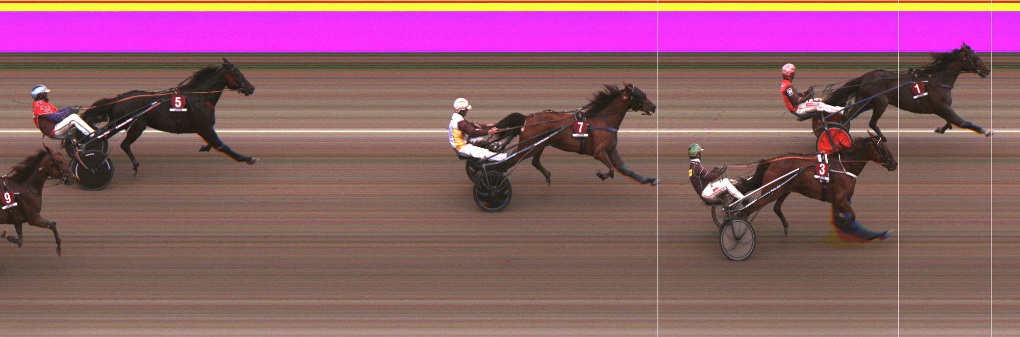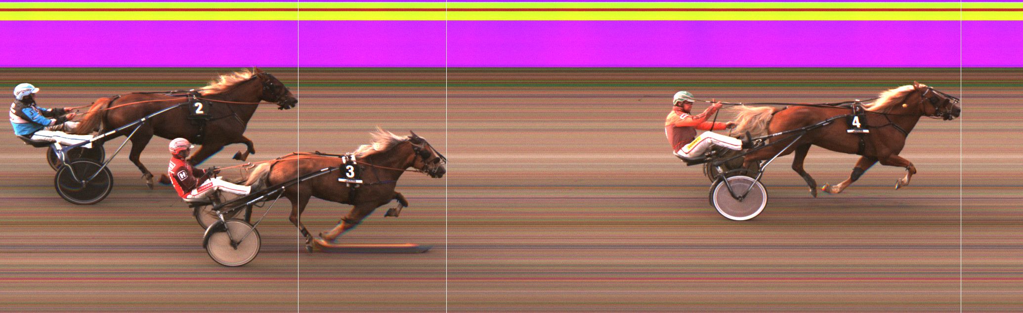LUMI-RAMI: Nousi 4. ulkoa kolmannelle 900 jäljellä ja sai poan vetoapua. Sai vapaan radan 600 jäljellä. Kiri maalisuoralla varmaan voittoon.