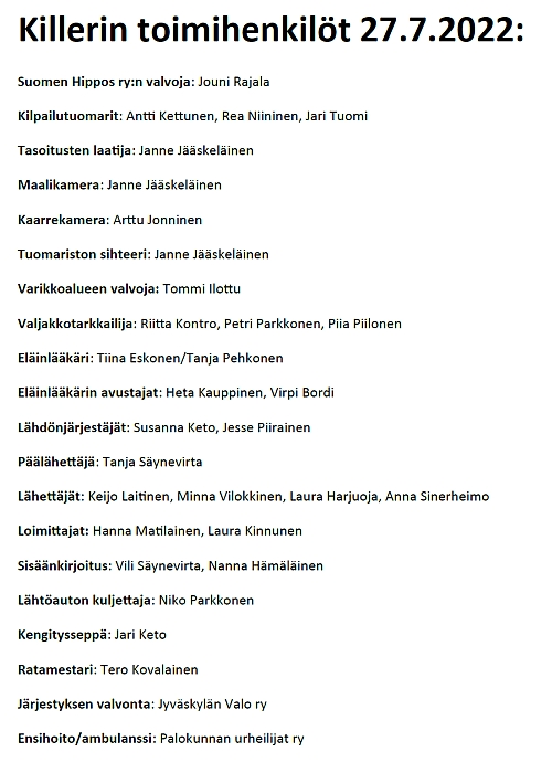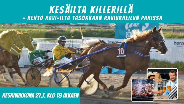 Raviviikon kohokohtiin kuuluvan keskiviikon kisat rantautuvat heinäkuun lopussa Killerille, joten 27.7. päästään seuraamaan tasokasta raviurheilua keskellä kuuminta kesälomasesonkia. Luvassa on kaksi ponilähtöä ja kymmenen hevoslähtöä.