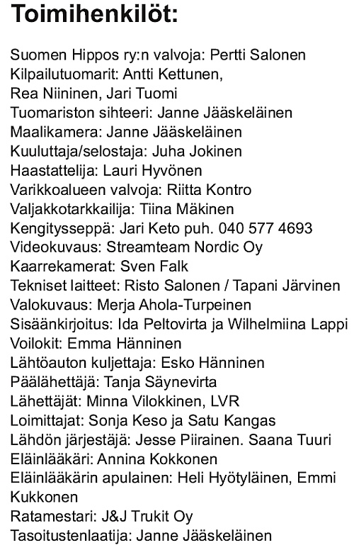R.R. ROSMARIINI: Luovutti keulat 1. takasuoran lopussa prässin alla, nousi maalisuoralla 2. ulos ja puristi totoon.