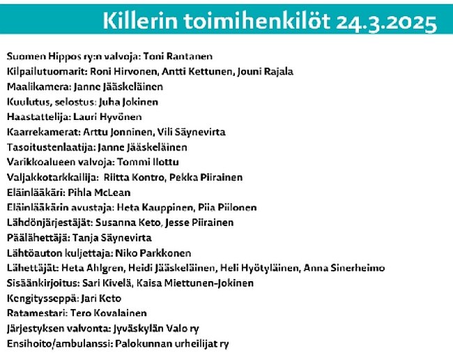 Lähtölistat, poisjäännit ja ohjastajanvaihdokset