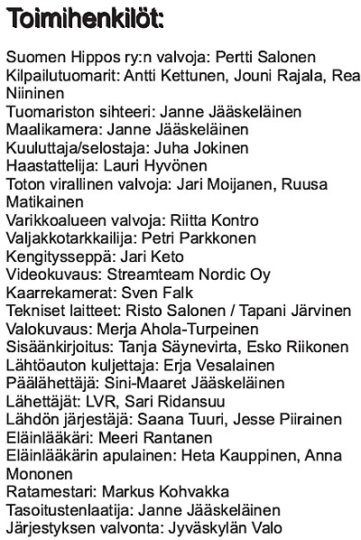 Opetuslähtö klo 16.50, koelähtö klo 17.00, nuoret-lähtö klo 17.10 ja ponilähtö klo 17.45.