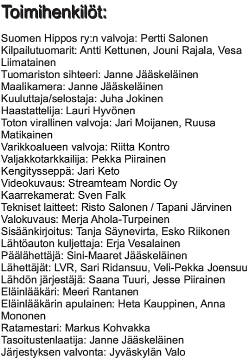Opetuslähtö klo 16.50, koelähtö klo 17.00, nuoret-lähtö klo 17.10 ja ponilähtö klo 17.45.