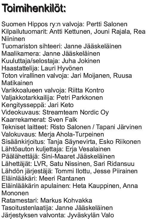 Opetuslähtö klo 16.50, koelähtö klo 17.00, nuoret-lähtö klo 17.10 ja ponilähtö klo 17.45.