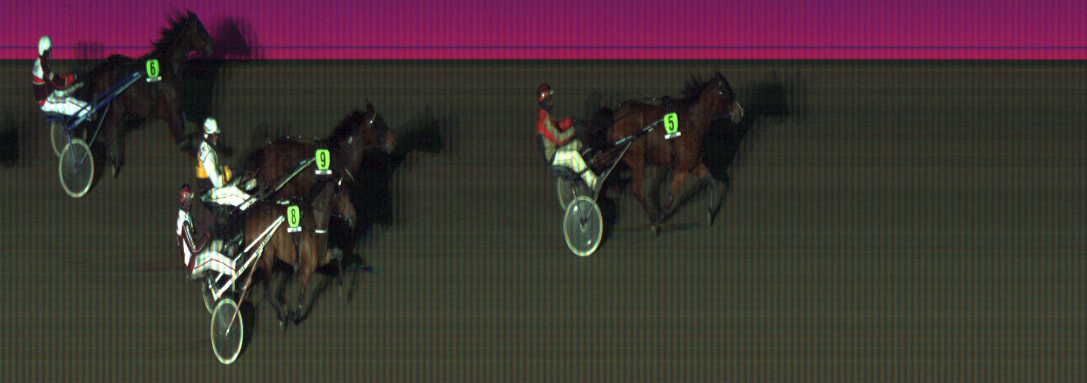 VELISKA: Pääsi viim. takasuoralla 6. sisältä 4. sisälle, nousi loppukurvissa selissä neljännelle radalle. Mahtui maalisuoran alussa leveään rintamaan uloimmaksi ja puristi tasaisessa maaliintulossa toiseksi.