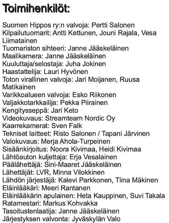 III: 1 K.P. Salama, 3 Särkän Kalle, 9 Kantri, 11 Veluuri, 12 Ilon Ari, 15 Carmela