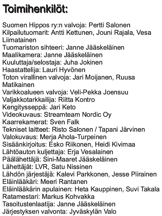 ristiin: 7 Lötens Turenne, 8 Vonkale, 12 Tähti-Vappu, 16 Elias Juoneter