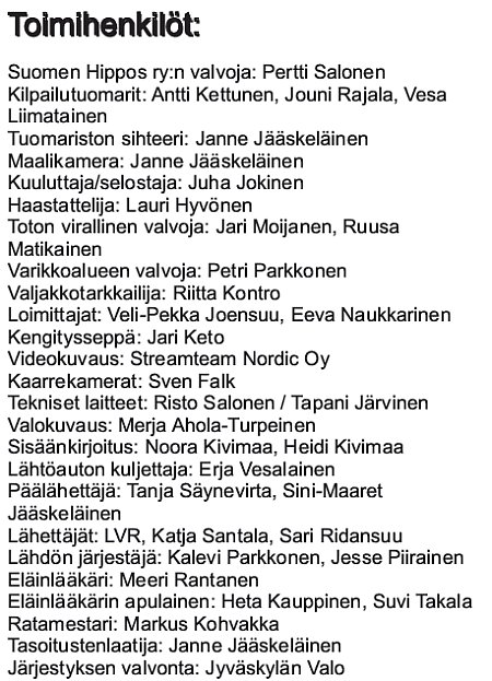SINNA: Laukkasi keskipareista 1. takasuoran lopussa ja myöhemmin taustalla tullen hylätyksi.